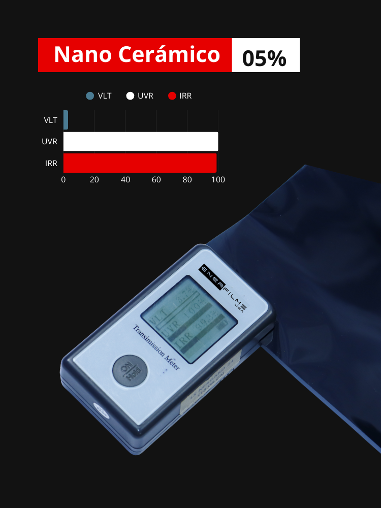 - Privacidad Total: Su transmitancia de luz visible es de tan solo el 5%, ideal para quienes buscan la máxima seguridad y privacidad en sus traslados.
